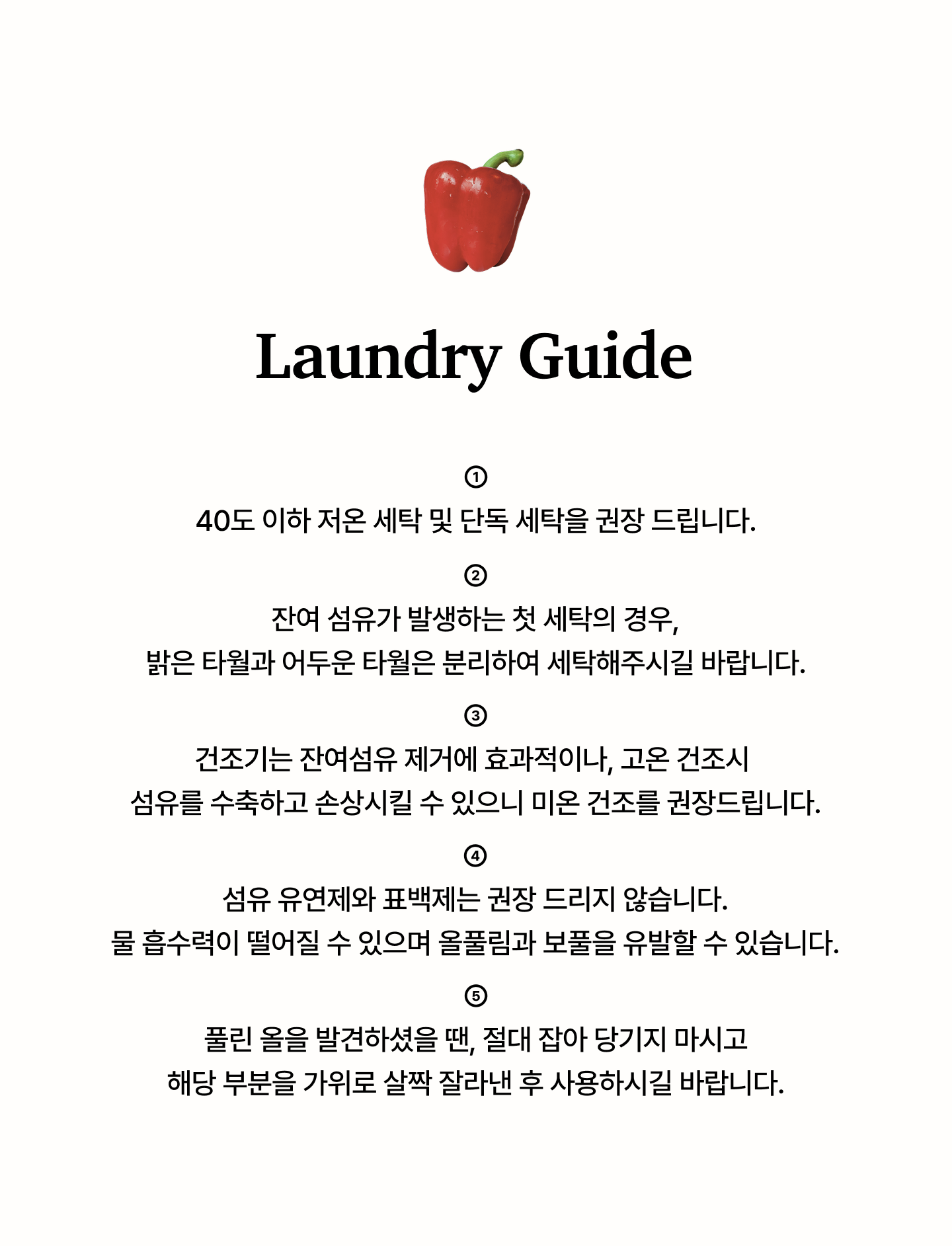 - 고객 변심으로 인한 교환/반품은 상품 수령 후 7일 이내 가능합니다.