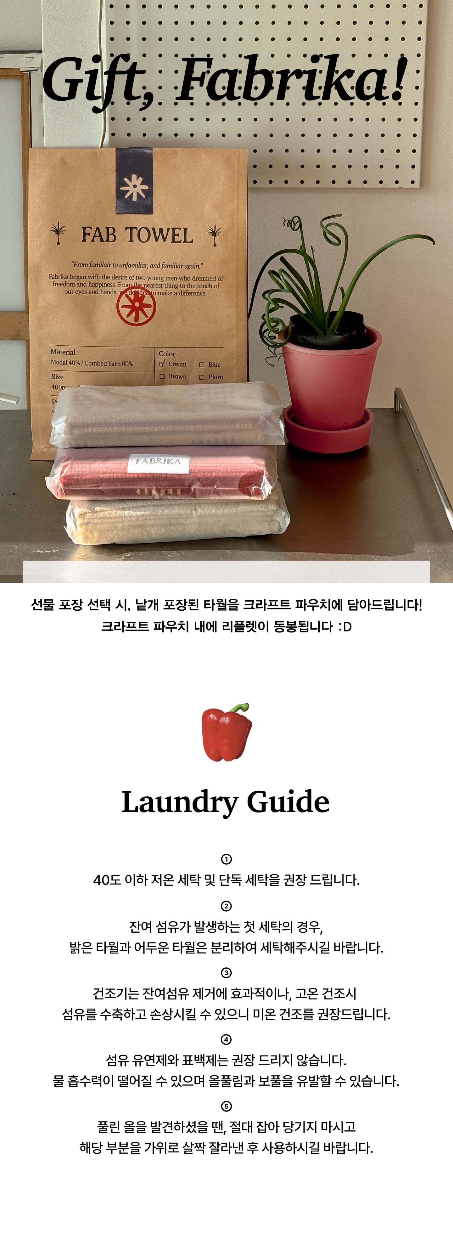 ⑴ 파브타월은 세계적인 엄격한 유해 물질 테스트를 통과 OEKO-TEXT STANDARD 1등급 제품입니다. 3세 미만 영아도 사용할 수 있는 안전한 섬유 제품이라는 뜻이죠. 코밍 공정을 거친 40수 코마사를 사용해 보풀과 먼지를 방지합니다.