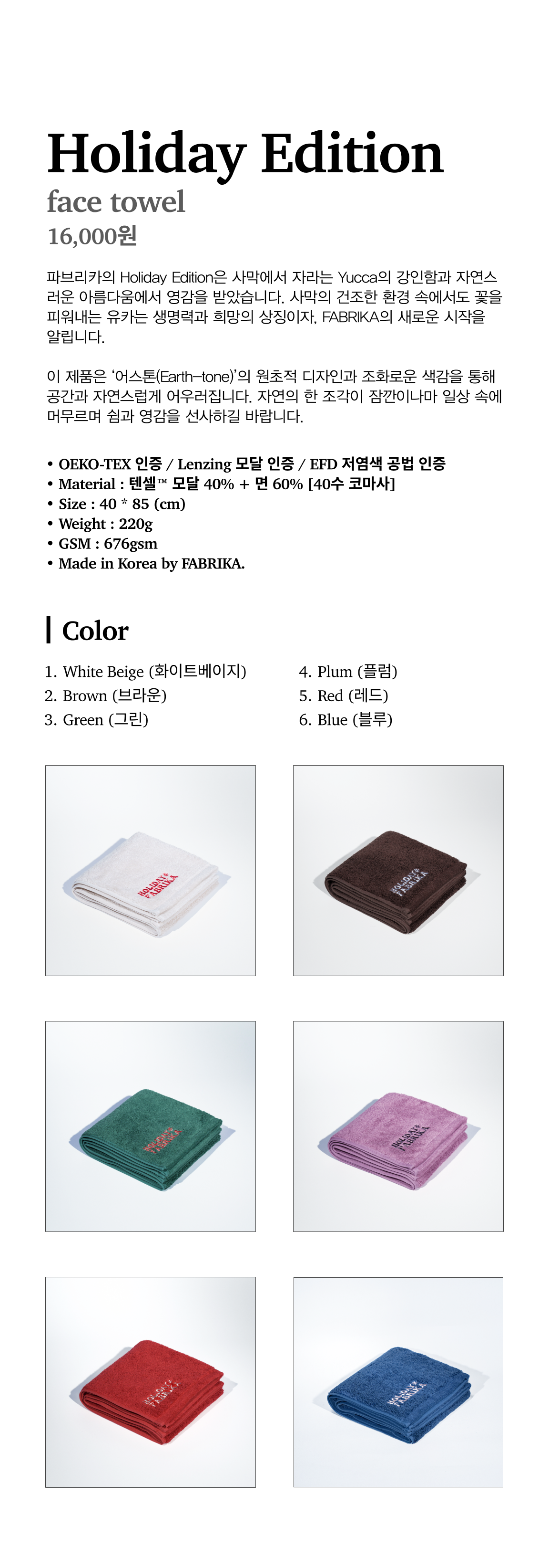 파브리카의 Holiday Edition은 사막에서 자라는 Yucca의 강인함과 자연스러운 아름다움에서 영감을 받았습니다. 사막의 건조한 환경 속에서도 꽃을 피워내는 유카는 생명력과 희망의 상징이자, FABRIKA의 새로운 시작을 알립니다.
